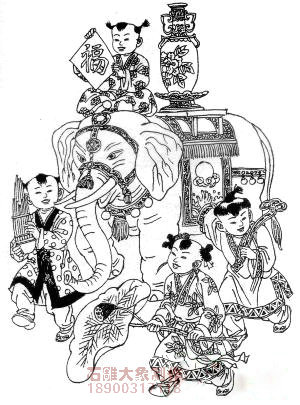 象在中國傳統(tǒng)文化中是吉祥、太平的象征,它性情溫和,知恩圖報,一直深受中國人的喜愛。傳說五帝之一的舜是中國歷史上馴服野象耕田犁地的第一人,他死后陵墓前曾出現(xiàn)大象刨土、彩雀銜泥的瑞兆,這應(yīng)該是“太平有象”的最早傳說。此后,人們運用諧音、象征等手法,把“太平有象”用圖畫、雕刻等形式表達(dá)出來,寓意天下太平、五谷豐登。