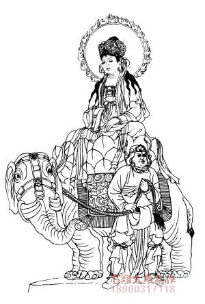 白象是普賢菩薩愿行廣大,功德圓滿的象征,所以峨眉山寺廟中的普賢塑像多騎白象。現(xiàn)在峨眉山的洗象池,傳說普賢菩薩每次騎象過此,必在這口池里汲水洗象,然后才登上金頂,池旁的寺院也取名洗象寺。為了歌頌普賢菩薩的功德,連纏生在冷杉枝干上的松蘿,當(dāng)?shù)厝艘裁榔涿皇恰捌召t線”,認(rèn)為是普賢菩薩特意在懸崖陡壁上掛起這些長線,引渡信徒登絕頂。
