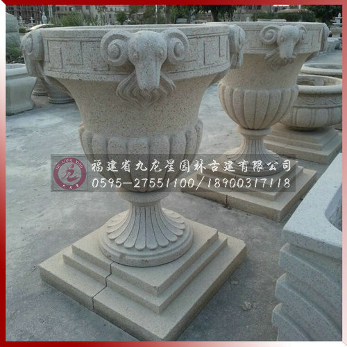 埃及米黃花缽-房地產(chǎn)樓盤(pán)小區(qū)石雕案例高清圖