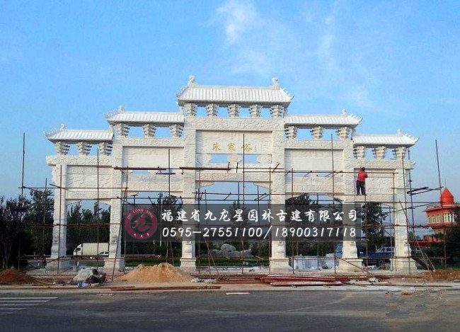 石雕牌坊,也叫石雕牌樓、山門,漢族特色建筑文化之一。最早見于周朝,最初用于旌表節(jié)孝的紀(jì)念物,后來在園林、寺觀、宮苑、陵墓和街道均有建造,北京是中國牌樓最多的城市。石雕牌坊用各種石料來進(jìn)行塑造,創(chuàng)造出具有一定空間的可視、可觸的建筑裝飾物,借以反映社會(huì)生活、表達(dá)意義。