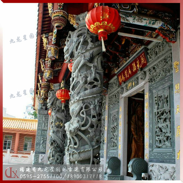 寺廟石雕龍柱是一種龍形浮雕圓柱,通身塑有纏柱云龍,栩栩如生,立在廣場路邊成為景觀和地標。在我們福建閩南沿海地區幾乎逢廟必有龍柱,讓人可以從龍的軀體雕鑿中感受到古代藝匠想要極力表達的“龍行虎步”、“龍虎精神”的意念。龍柱是中華民族的傳統建筑物,有著悠久的歷史。