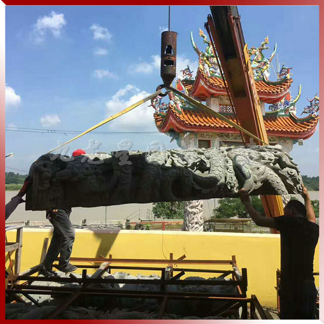 九龍星園林古建寺廟青石龍柱安裝現(xiàn)場(chǎng)