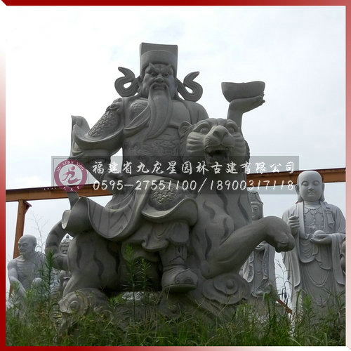 財神有文財神和武財神之分,文財神為比干,武財神為關(guān)羽和趙公明。武財神是漢族民間信仰的一位財神。關(guān)帝閣的武財神關(guān)羽手持青龍偃月刀,形象威武,義薄云天。趙公明一手拿元寶,一手拿長鞭。當(dāng)今道教宮觀中的財神神像,多為黑面濃須,騎黑虎,一手執(zhí)銀鞭,一手持元寶,全副戎裝。該財神像當(dāng)為財神,即趙公元帥像。趙公元帥,即趙公明、趙玄壇。供奉武財神寄托了漢族勞動人民一種祛邪、避災(zāi)、祈福的美好愿望。