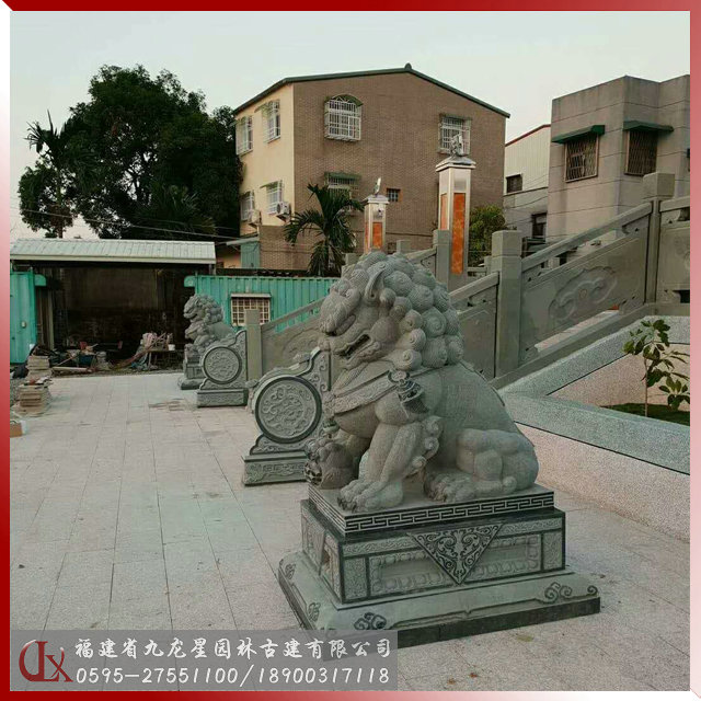 寺廟石雕獅子抱鼓石桿欄安裝