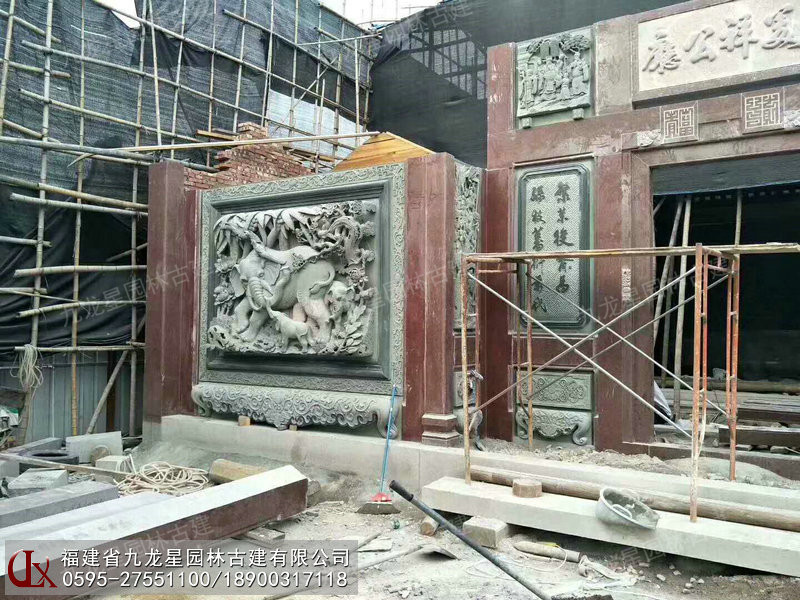 寺廟墻面浮雕壁畫安裝現場 九龍星園林古建