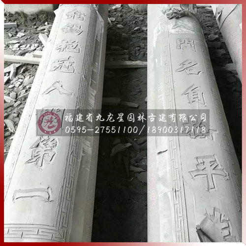 方形圓形石雕對聯(lián)柱寺院祠堂古建專用由福建省九龍星園林古建有限公司專業(yè)生產(chǎn)加工,我司常年供應(yīng)傳統(tǒng)手工寺廟雕刻精雕龍鳳柱、石雕龍柱、盤龍柱、華表龍柱、對聯(lián)柱、廣場文化柱等各種款式石雕柱子。