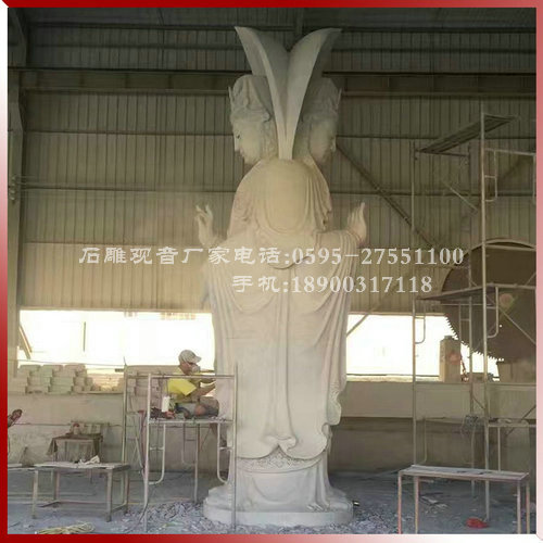 雙面石雕觀音佛像雕刻現場