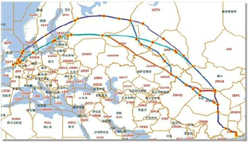 FOC系統(tǒng)可自動規(guī)劃多條航線方案(以北京至倫敦為例)