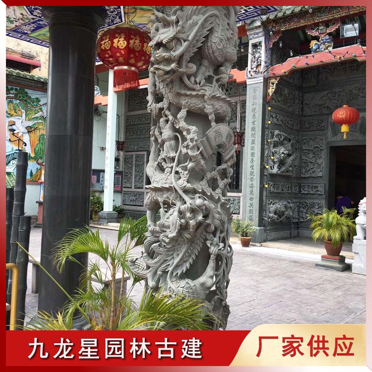 盤龍柱石雕 青石雕龍柱 寺廟石雕龍柱的應用 九龍星