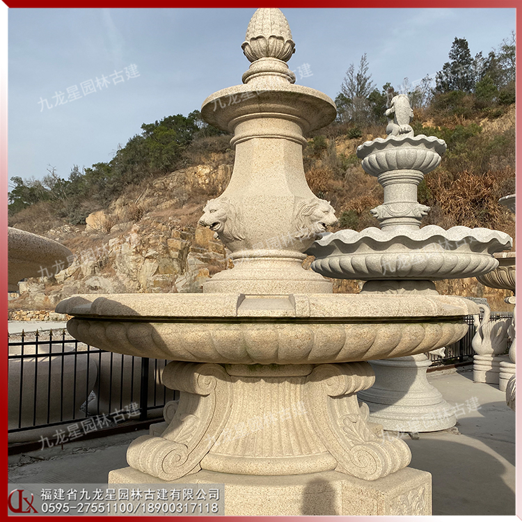 花崗巖石雕水缽批發 雙層 多層 造型多樣