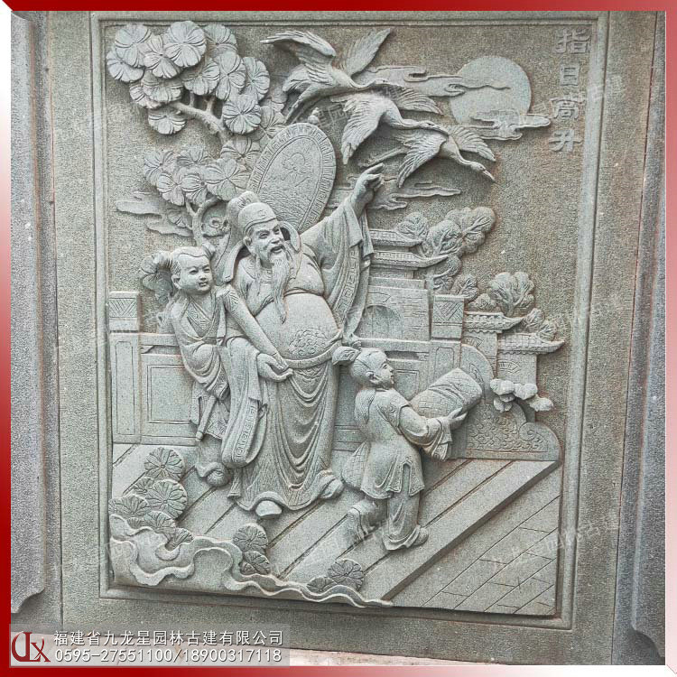 鶴鹿同春 松鶴延年浮雕 惠安石雕浮雕廠 九龍星