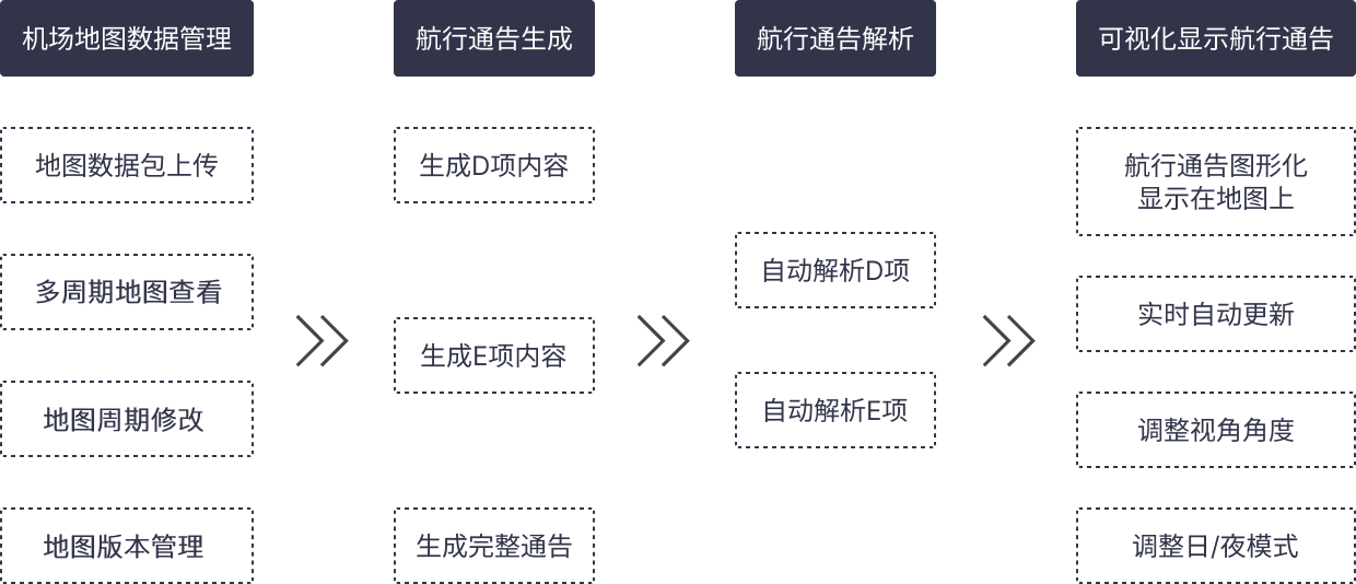 中導(dǎo)航的航行通告可視化系統(tǒng),主要用于解決民航機(jī)場航行通告的動態(tài)處理和實(shí)時圖形化顯示業(yè)務(wù)。對空管局的情報(bào)員,本系統(tǒng)能提高航行通告的發(fā)報(bào)效率和報(bào)文質(zhì)量,報(bào)文更規(guī)范,有利于其他使用人員閱讀理解,也有利于以系統(tǒng)化方式解析、應(yīng)用;對空管局的管制員,本系統(tǒng)在數(shù)字化機(jī)場地圖上,實(shí)時展示航行通告的動態(tài)圖形,比文字更直觀和有效,易于理解、掌握和使用,有效提高機(jī)場管制運(yùn)行的安全水平。