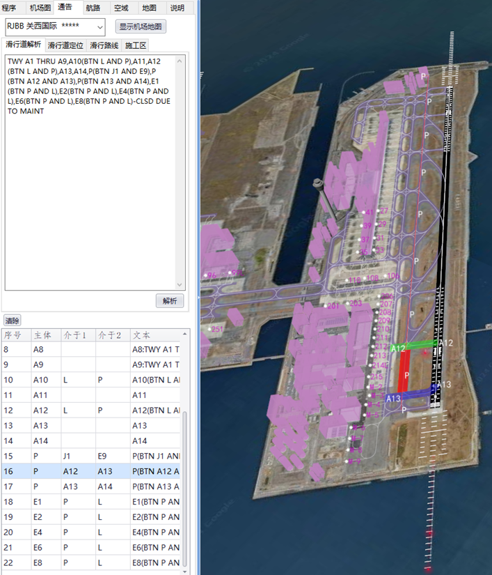 支持中、英文部分滑行道航行通告的一鍵解析。中文航行通告解析: