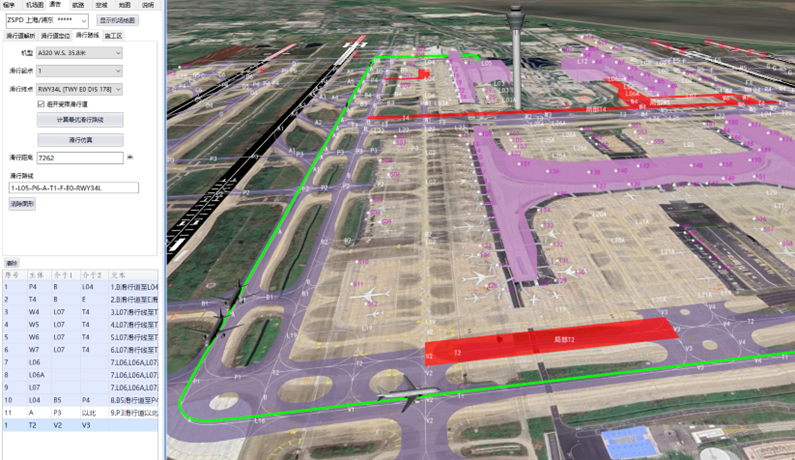 自動(dòng)規(guī)避關(guān)閉滑行道、施工區(qū)、翼展限制等條件,計(jì)算從停機(jī)位和跑道入口的的最優(yōu)滑行路線。